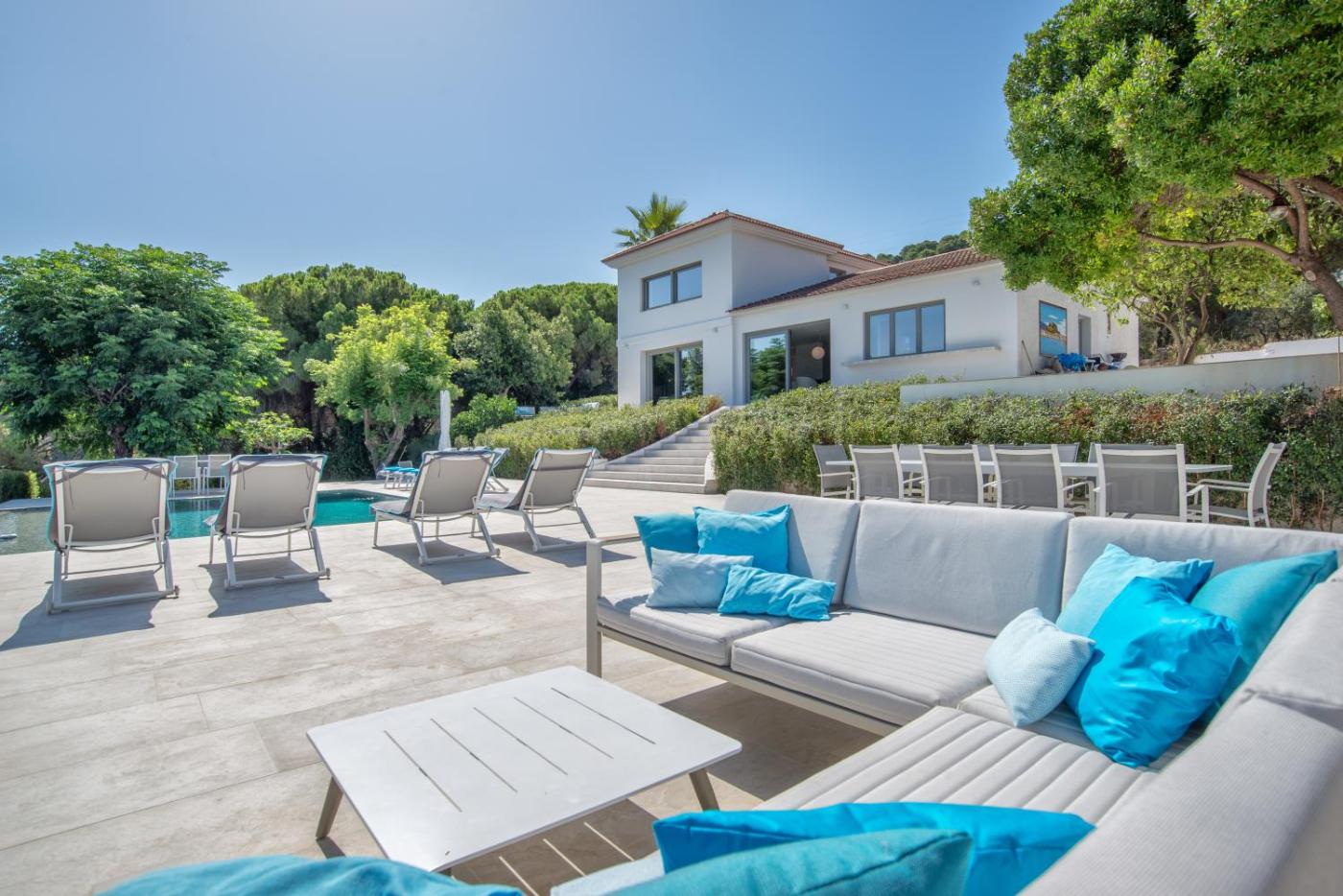 Six-Bedroom House. Guests will have a special experience as this holiday home offers a infinity pool and a fireplace. Featuring a private entrance, this air-conditioned holiday home comprises 2 living rooms, 6 separate bedrooms and 6 bathrooms with a walk-in shower and a hairdryer. Guests will find a stovetop, a refrigerator, a dishwasher and kitchenware in the kitchen. The holiday home also provides guests with a barbecue. Boasting a terrace with garden views, this holiday home also provides a washing machine and a flat-screen TV. The unit offers 10 beds.