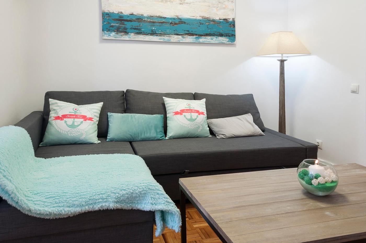 Apartment with Sea View. This apartment includes 1 living room, 1 separate bedroom and 1 bathroom with a shower and free toiletries. The well-fitted kitchen has a refrigerator, a dishwasher, kitchenware and a microwave. The air-conditioned apartment offers a flat-screen TV with streaming services, a washing machine, soundproof walls, a tea and coffee maker as well as sea views. The unit has 2 beds.