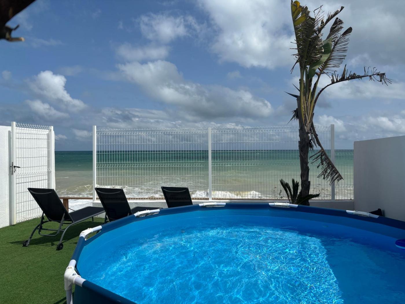 Two-Bedroom House. Guests will have a special experience as this holiday home provides a pool with a view. Featuring a private entrance, this air-conditioned holiday home is comprised of a kitchen, 2 bedrooms and 2 bathrooms with a shower and a bidet. Guests will find a stovetop, a refrigerator, an oven and a microwave in the well-fitted kitchen. The holiday home also has a barbecue. Boasting a terrace with sea views, this holiday home also offers a washing machine and a flat-screen TV. The unit offers 2 beds.