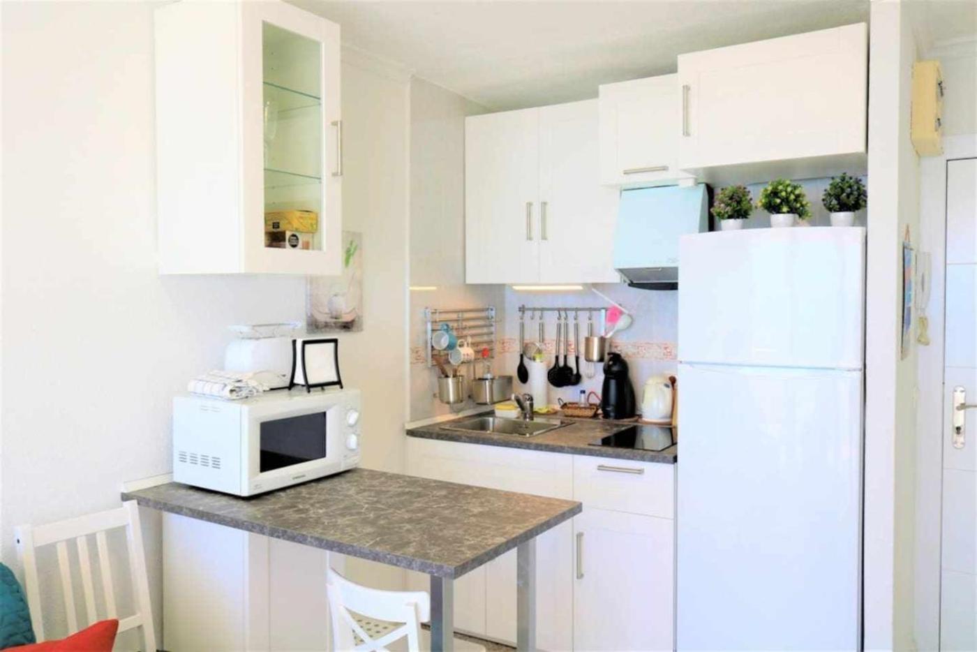 One-Bedroom Apartment. Boasting a private entrance, this air-conditioned apartment includes 1 bedroom and 1 bathroom with a shower. In the well-fitted kitchen, guests will find a refrigerator, kitchenware, a microwave and a tea and coffee maker. Featuring a terrace with pool views, this apartment also offers a washing machine and a flat-screen TV with cable channels. The unit has 2 beds.