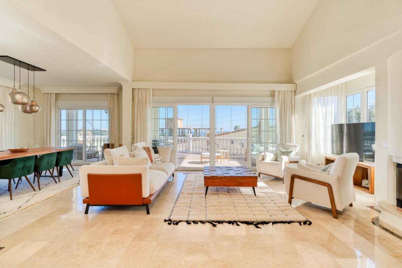 Villa. The private pool is a top feature of this villa. Boasting a private entrance, this air-conditioned villa features 2 living rooms, 4 separate bedrooms and 3 bathrooms with a bath and a shower. Guests will find a stovetop, a refrigerator, a dishwasher and an oven in the well-fitted kitchen. The villa also comes with a barbecue. The spacious villa features a washing machine, a tea and coffee maker, a dining area as well as a terrace with sea views. The unit has 5 beds.