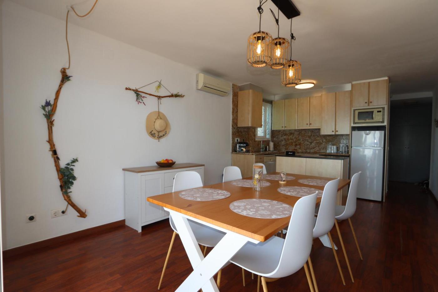 Two-Bedroom Apartment. The apartments kitchen is available for cooking and storing food. This apartment is air-conditioned and has a washing machine, a coffee machine as well as a terrace with sea views. The unit has 3 beds.