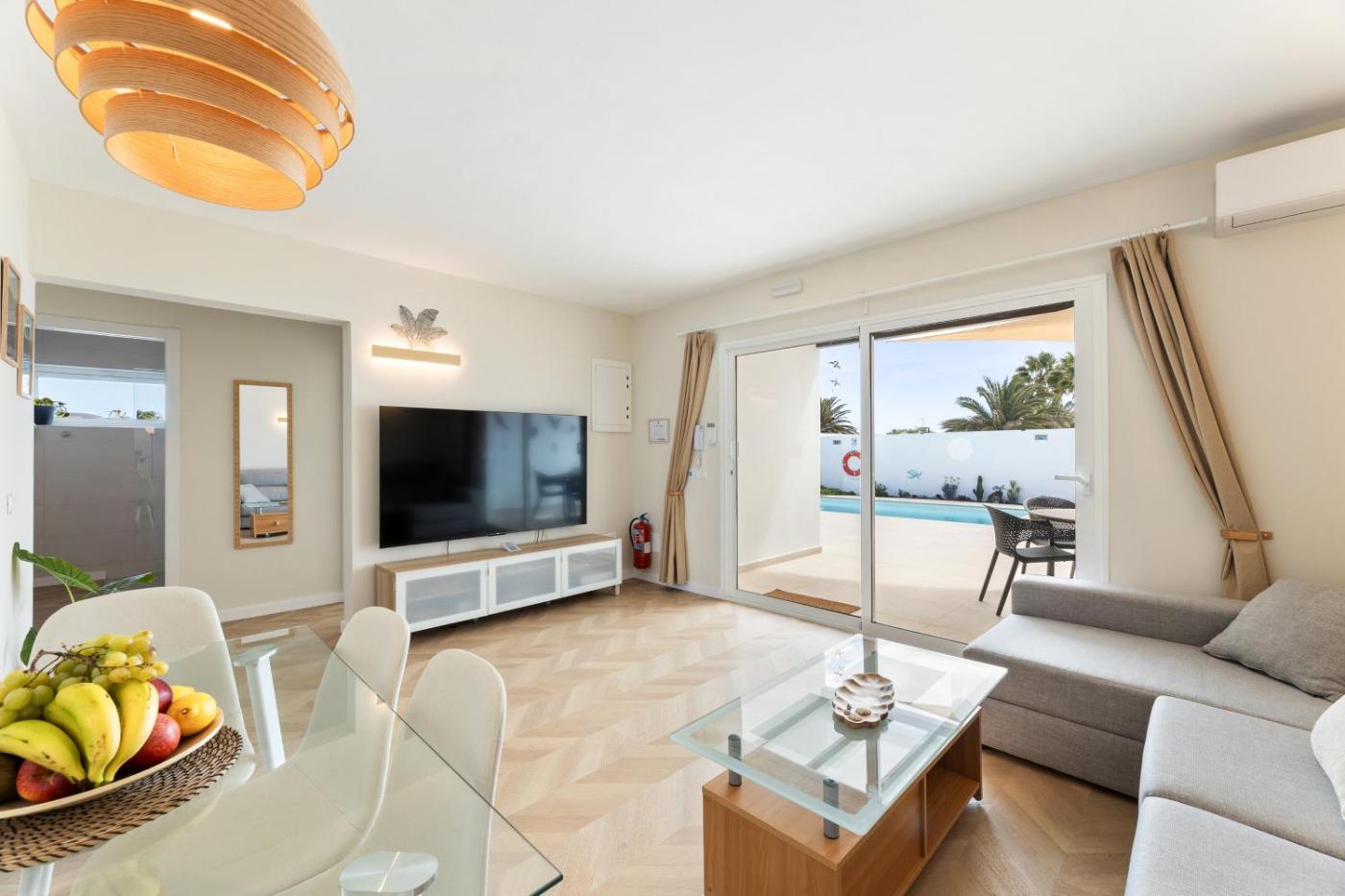 Two-Bedroom Villa. This villas standout feature is the private pool. Boasting a private entrance, this air-conditioned villa includes a kitchen, 2 bedrooms and 1 bathroom with a walk-in shower and a hairdryer. Guests will find a refrigerator, a dishwasher, kitchenware and a microwave in the fully equipped kitchen. The villa also features a barbecue. Featuring a terrace with garden views, this villa also offers a washing machine and a flat-screen TV. The unit has 3 beds.