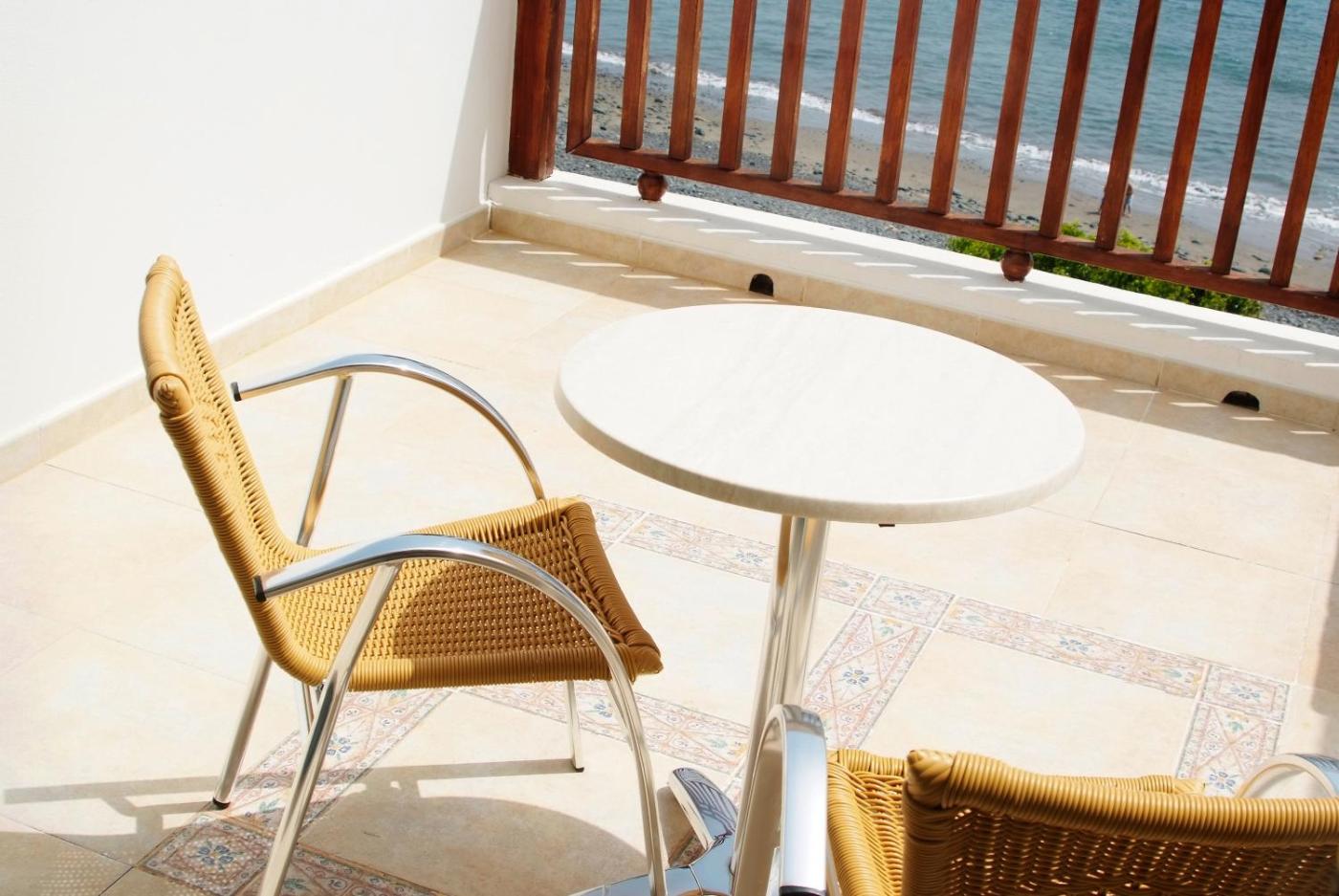 Junior Suite with Sea View. This air-conditioned suite comes with satellite TV and 2 private terraces. There is a separate lounge area and a private bathroom with a hydromassage bath. Also included are bath candles, an expresso machine, safe and a minibar. ;