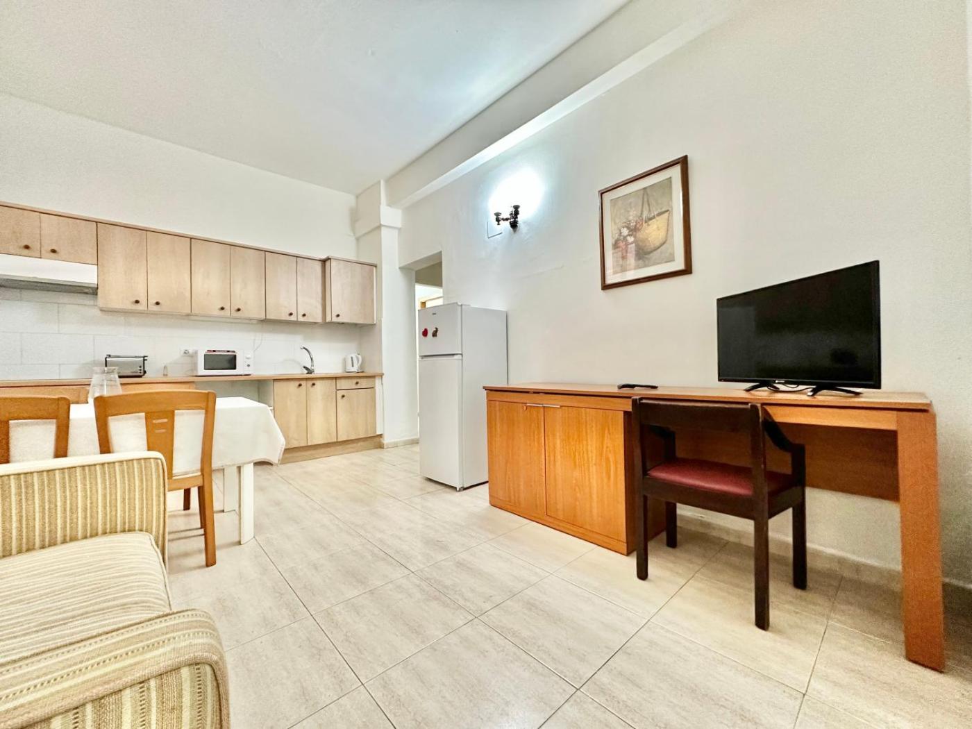 One-Bedroom Apartment with Balcony and Sea View. This apartment is comprised of 1 living room, 1 separate bedroom and 1 bathroom with a shower and a bidet. Guests can make meals in the kitchen that comes with a stovetop, a refrigerator, kitchenware and an oven. Featuring a balcony with sea views, this apartment also offers a washing machine and a flat-screen TV with streaming services. The unit offers 2 beds. ;