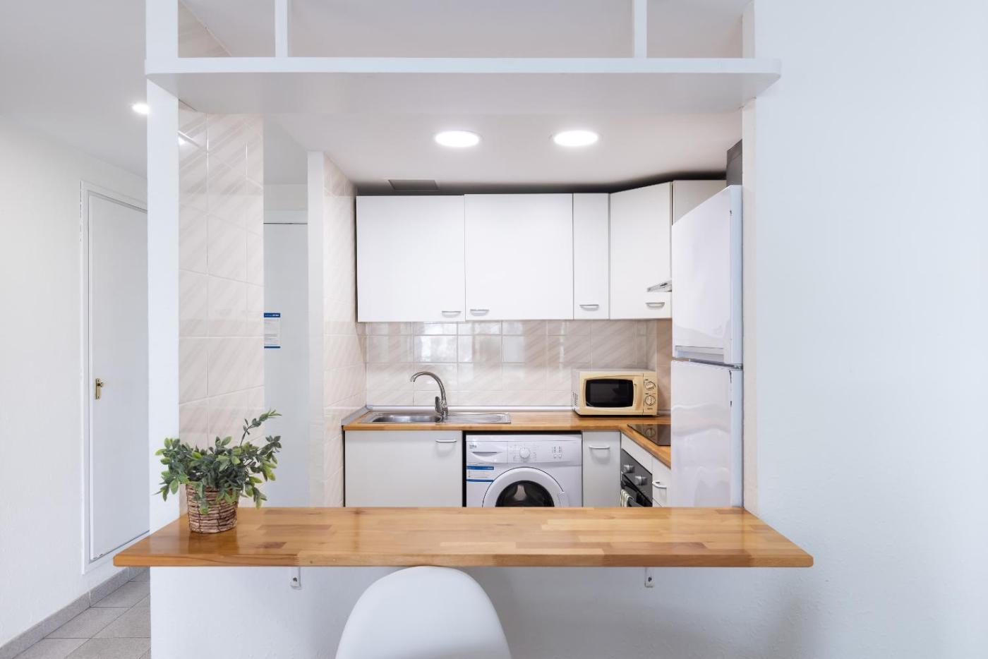 One-Bedroom Apartment. This air-conditioned apartment consists of 1 living room, 1 separate bedroom and 1 bathroom with a shower. In the well-fitted kitchen, guests will find a stovetop, a refrigerator, kitchenware and an oven. Featuring a terrace with city views, this apartment also provides a washing machine and a flat-screen TV. The unit offers 2 beds.