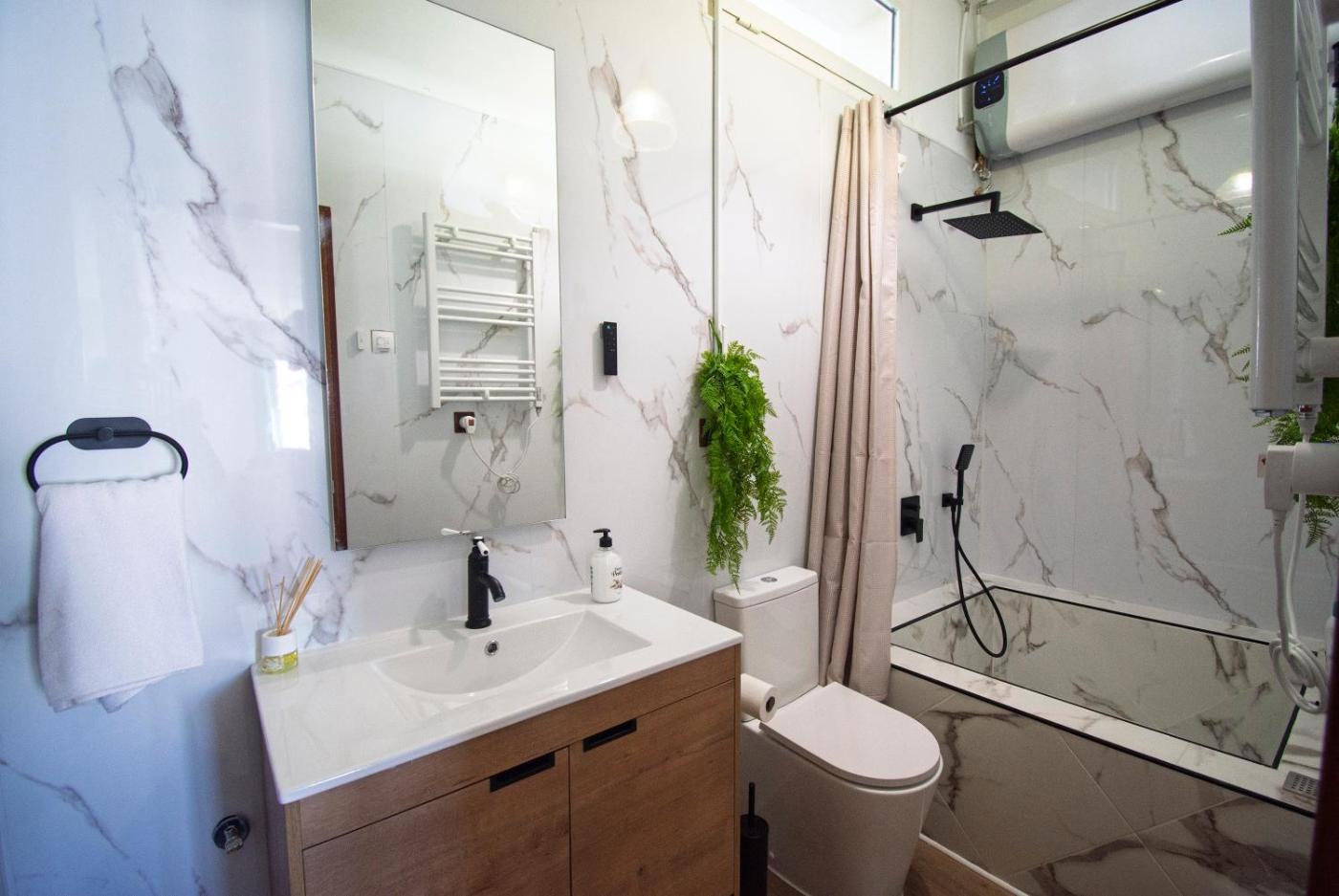 One-Bedroom Apartment with Balcony and Mountain View. The fireplace is the standout feature of this apartment. This apartment features 1 living room, 1 separate bedroom and 1 bathroom with a bath and free toiletries. Guests can make meals in the kitchen that features a refrigerator, kitchenware and a microwave. Boasting a terrace with mountain views, this apartment also features a tea and coffee maker and a TV. The unit has 4 beds.